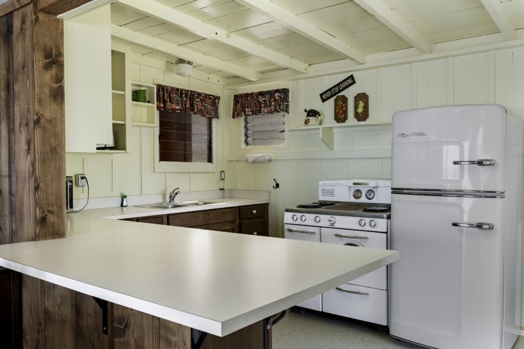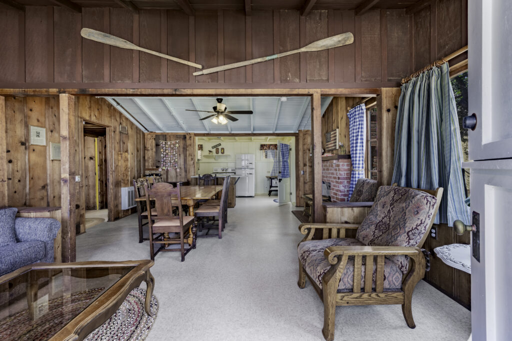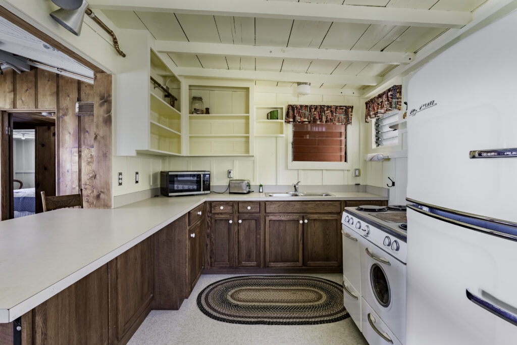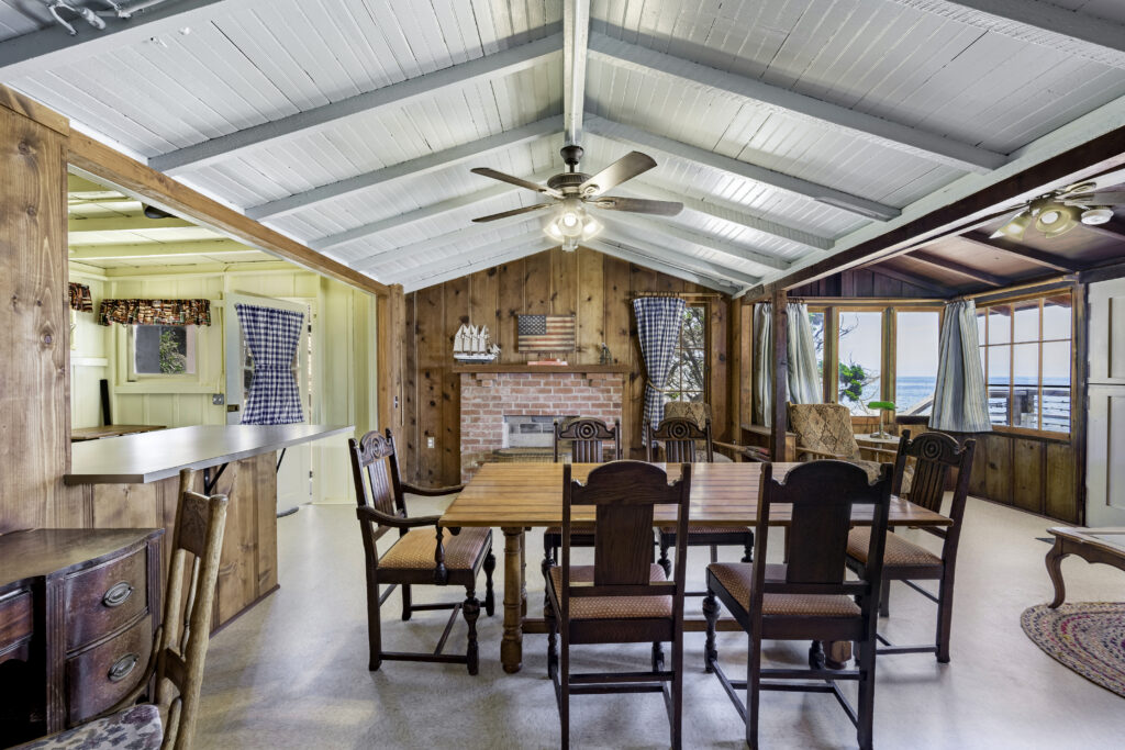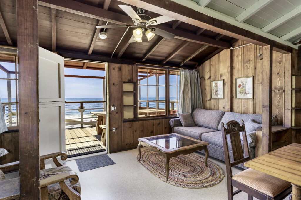 Cottage 20A, known as Professor’s Perch, offers a second-story vantage point with sweeping ocean views along the North Beach. A generous ocean-view deck extends the cottage space outdoors, complemented by a spacious living room for gathering and relaxation. The cottage features two bedrooms and one bathroom, accommodating up to six guests.